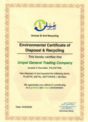 In 2025, Unipal achieved the ISO 27001 certification, the international standard for information security management. This certification ensures robust protection of sensitive data, transparent operational controls, and disciplined risk management practices. By implementing comprehensive information security protocols, Unipal Palestine enhances stakeholder trust, demonstrate accountability to our stakeholders.